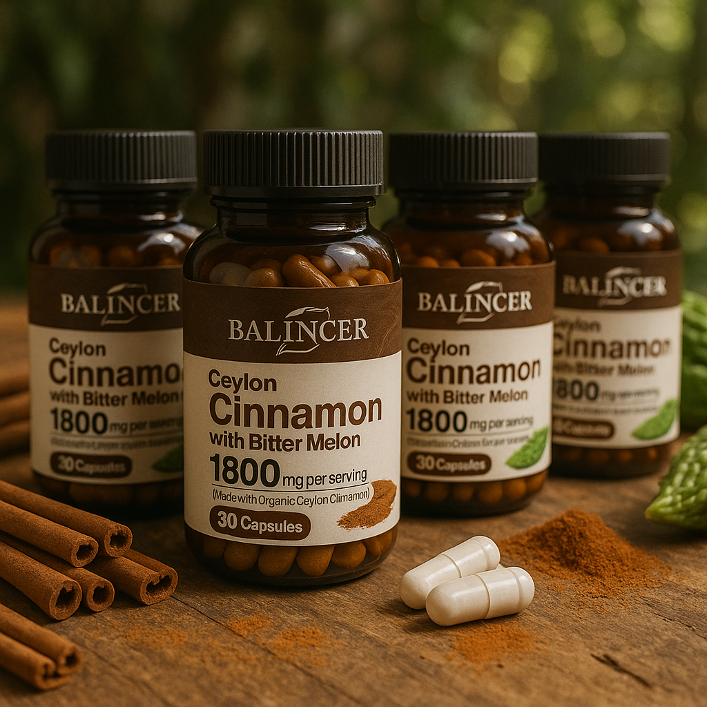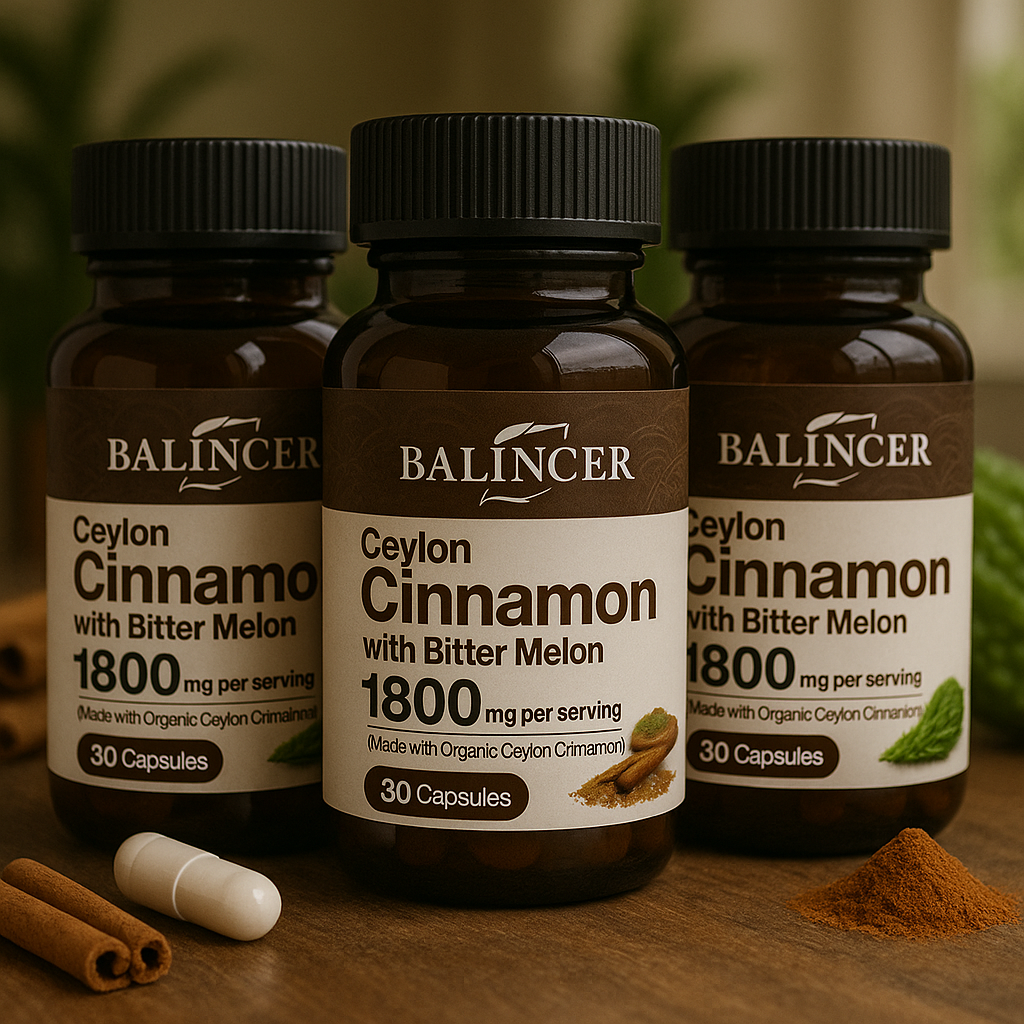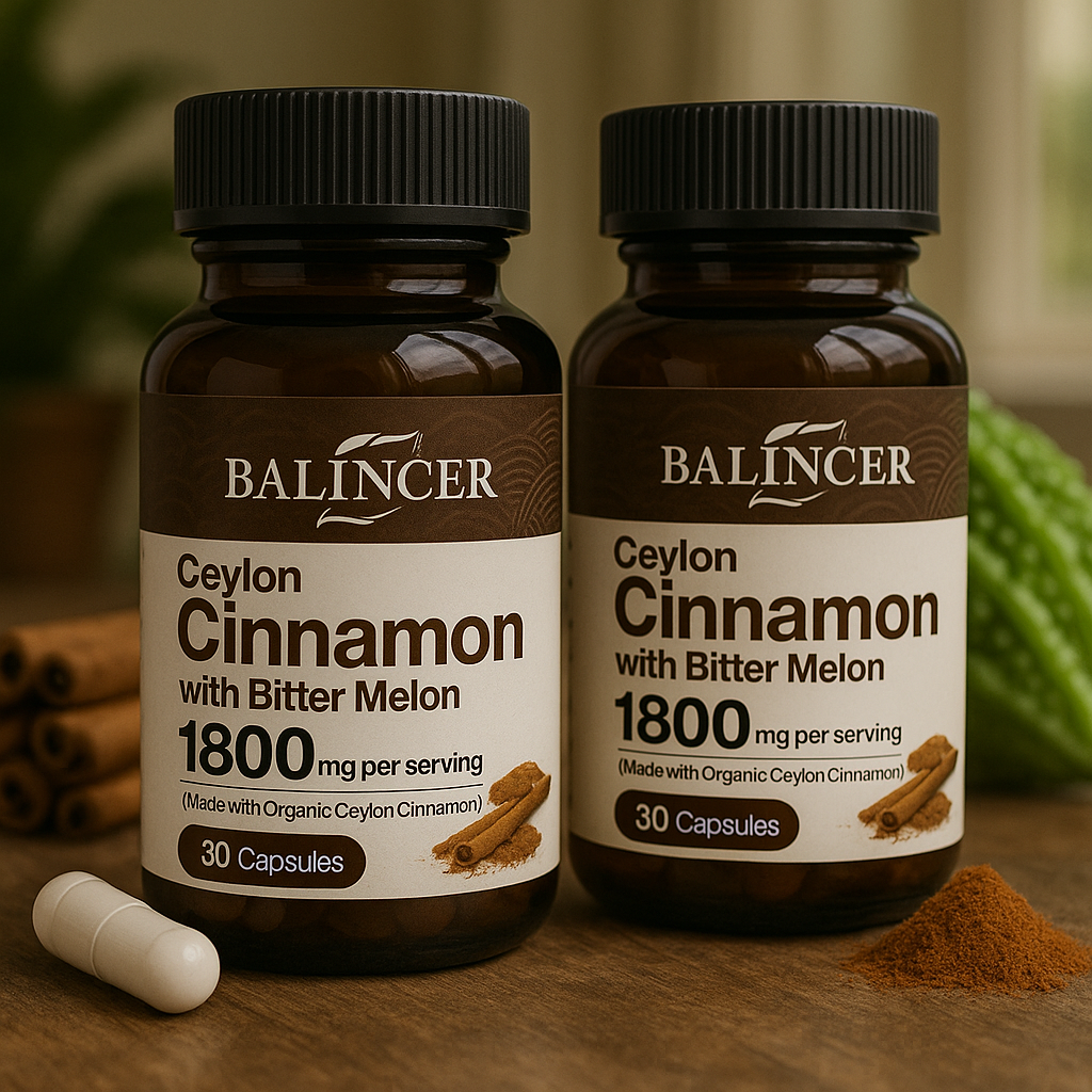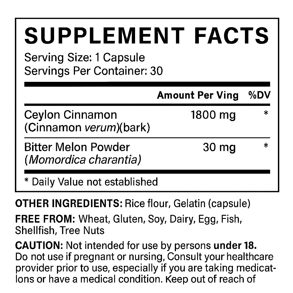 Taking just a capsule a day of our Ceylon Cinnamon + Bitter Melon blend helps improve insulin sensitivity, support healthy blood sugar, reduce sugar cravings & energy crashes, and combat stubborn belly fat — using the combined power of 1800 mg Ceylon Cinnamon and 30 mg Bitter Melon.
